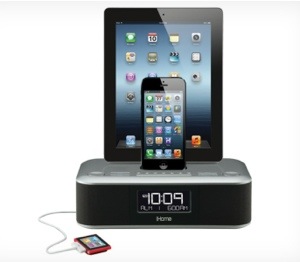iDL100 Triple Charging Stereo FM Clock Radio With Two Lightning Docks and USB Charge/Play for iPhone, iPad and iPod Touch: the ultimate iHome Lightning docks with a triple 2.1 charging hub for your iDevices, the iDL100 includes two Lightning docks as well as a universal USB dock to charge and play audio from legacy devices. An auto sync feature syncs the unit to iPhone/iPad/iPod time, while an aux-in jack is also included for audio devices equipped with 3.5mm headphone jack. The iDL100 is expected to retail for $149.99.