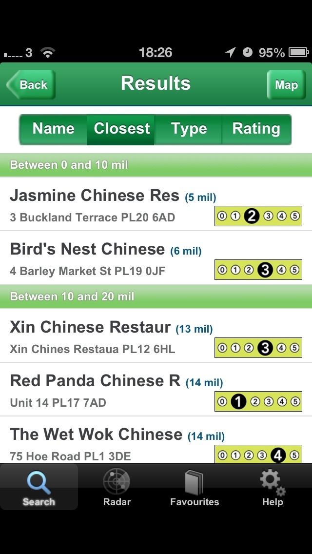 So I did a search on local Chinese takeaways and restaurants. Only the New Cantonese Kitchen in Market St, Tavistock had a top mark 5. Just look at the results of some of the others. Don’t think I will eat at those restaurants .