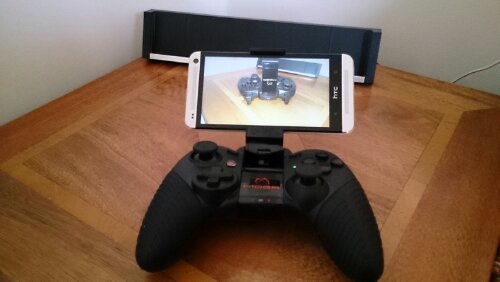 However, using it with your phone is equally slick, with an extendable arm that springs back to hold your phone. Shown above with the HTC One in situ. The angle of the arm can be adjusted too, either as shown or upright. The controller is available in several countries. In the UK, I got mine from Game UK for £39.99. I have also seen it in Game UK retail stores. As part of the price, you also get a copy of Pac Man and Nova 3. Nova 3 can only be installed on one device, so if you have a tablet and phone choose wisely.