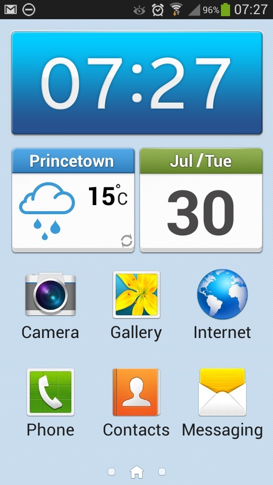 As you can see from the above screen shot you get nice large icons. That is carried across to the other 2 pre configured screens.