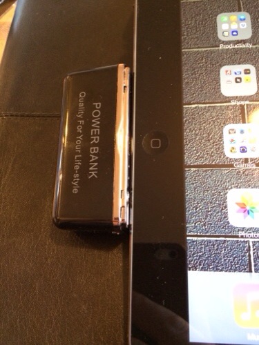 It’s a very simple piece that you charge up, and when needed just connect to the lightning connector . I found with the iPad Air I could still use the Smart Cover and type with it connected. If you try and use it with the 5S it starts charging but then stops and a message appears saying not an approved accessory.