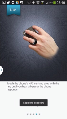 It comes in 2 sizes, 17mm and 22mm. The 17mm is too small for me so I suggest opting for the larger size. As you can see from the photo below, it just comes in a box with no instructions other than a barcode for you to scan to download the app. The screen shots from the app are shown, but even after opening the app I still wasn’t sure as to how everything was going to work. In fact I found it difficult to grasp. Also the NFC was hit and miss with my Note 3. I think you really need to be very geeky to want this product and understand NFC in depth. It really could do with some proper instructions and explanations.