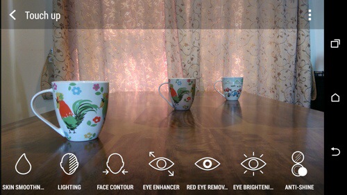 So if we start with the original photo again, effects and select “Foregrounder” we can start to change the effects based on the focus depth point selected. The options within Foregrounder are Sketch, Zoom Blur, Cartoon and Colorize. Using the middle mug as the focus point this is what sketch does. Out of all the effects I was least impressed with this. Maybe over time as HTC tweak the software and the third party developers bring out cool new apps we will see the full potential of this second lens on the rear.
