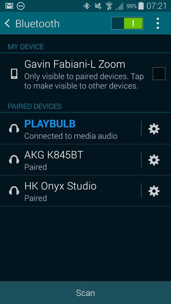 So to start off, screw bulb in to a light fitting. I used my clamp on fitting which gives versatility in placement. Next turn on your Bluetooth settings on pair the device. You should see it connected as a headset. See below.