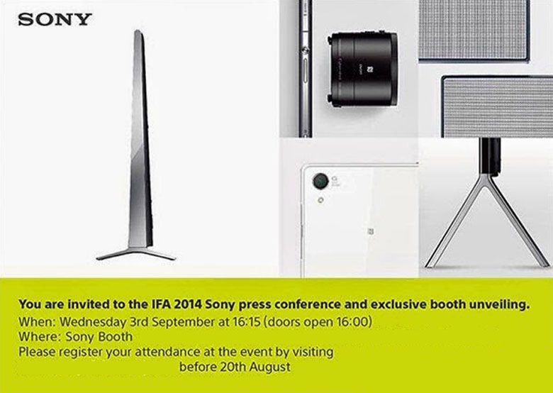 With IFA Berlin 2014 occurring in September a number of manufacturers are likely to hold press conferences prior to the official conference opening of IFA. Apart from Samsung, Sony is also holding a press conference on the 3rd September and judging by the invite it looks certain we will see new smartphones, tablets and the new Sony QX30 Hub lens.