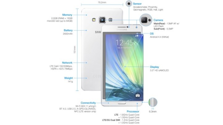 Samsung_Galaxy_A7_Official_Specs Published on January 13, 2015 in Samsung Galaxy A7 – Full specs – Samsung’s first nearly all metal phoneFull resolution (792 × 446)