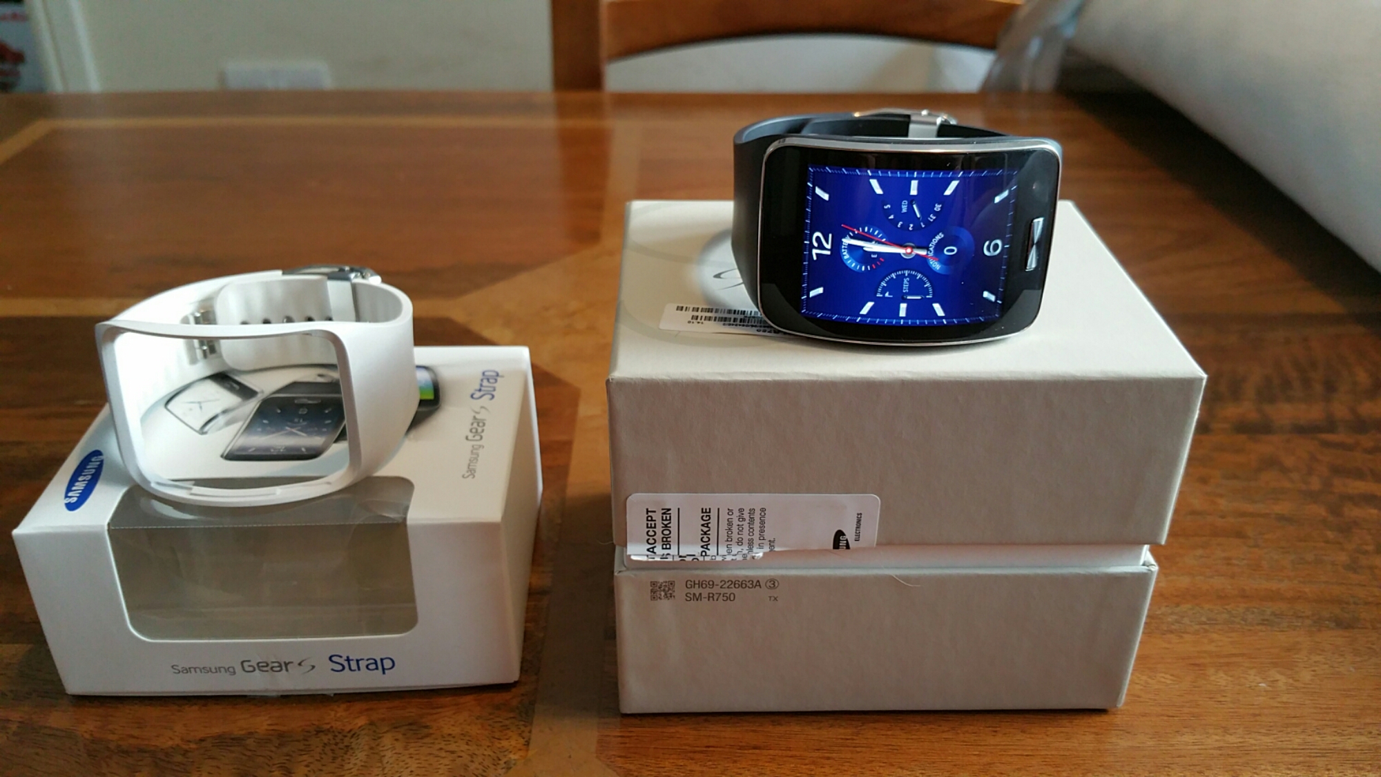 I am selling my Samsung Gear S with extra strap, boxes and charger. I can also attach the receipt. Some photos just taken of the various screens. There are more and you can customise the clocks. Not only is it a smart watch but you can also add your own sim card and it becomes a smartwatch that makes phone calls independently to your phone.