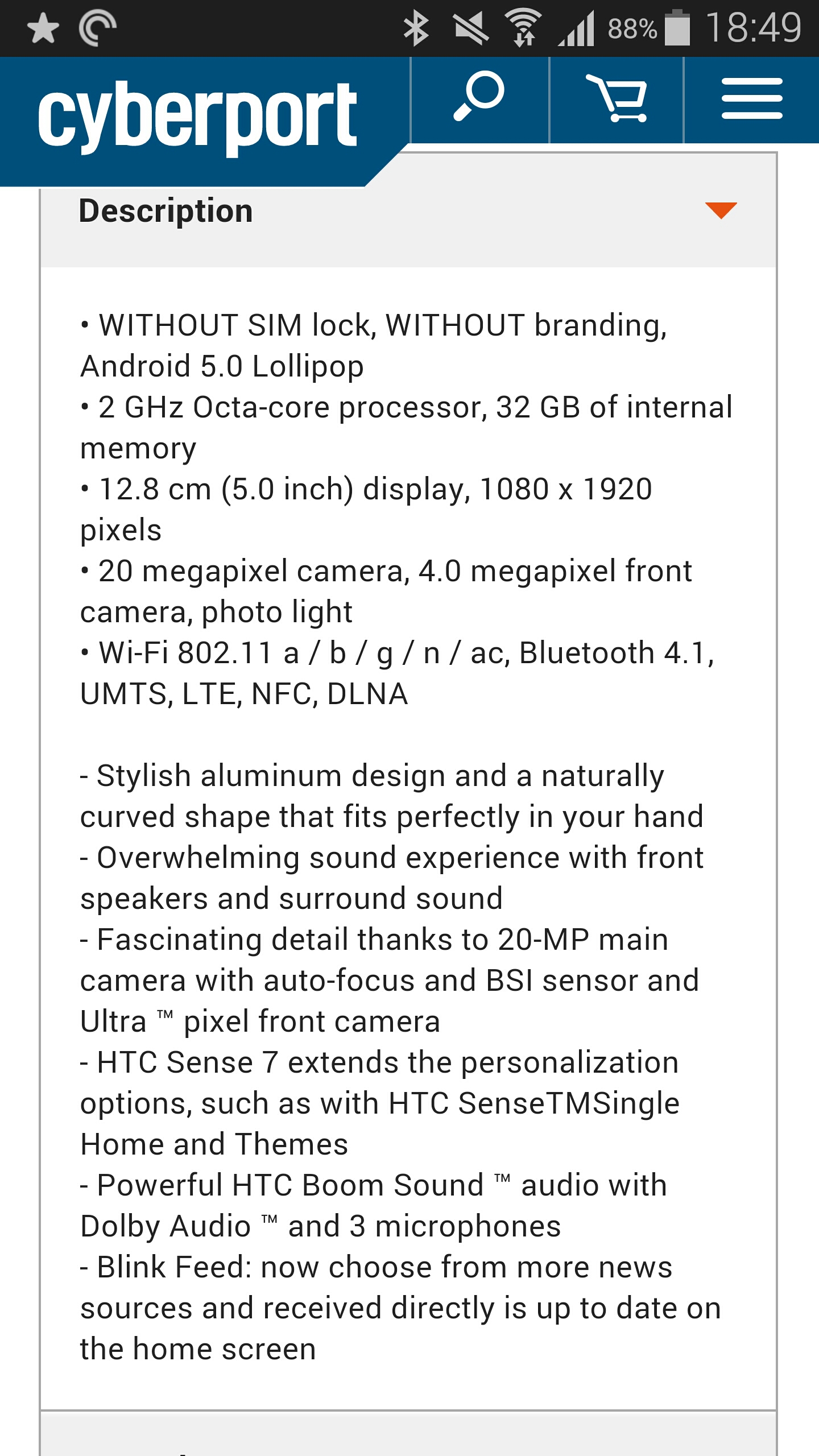 Cyberport.de jumped the game and published the full low down on the HTC One M9. Before they info got pulled I took a few screen grabs.