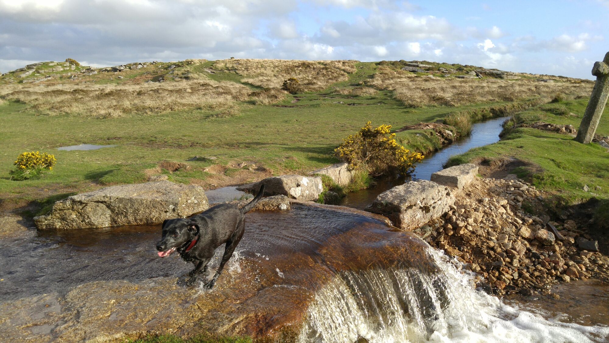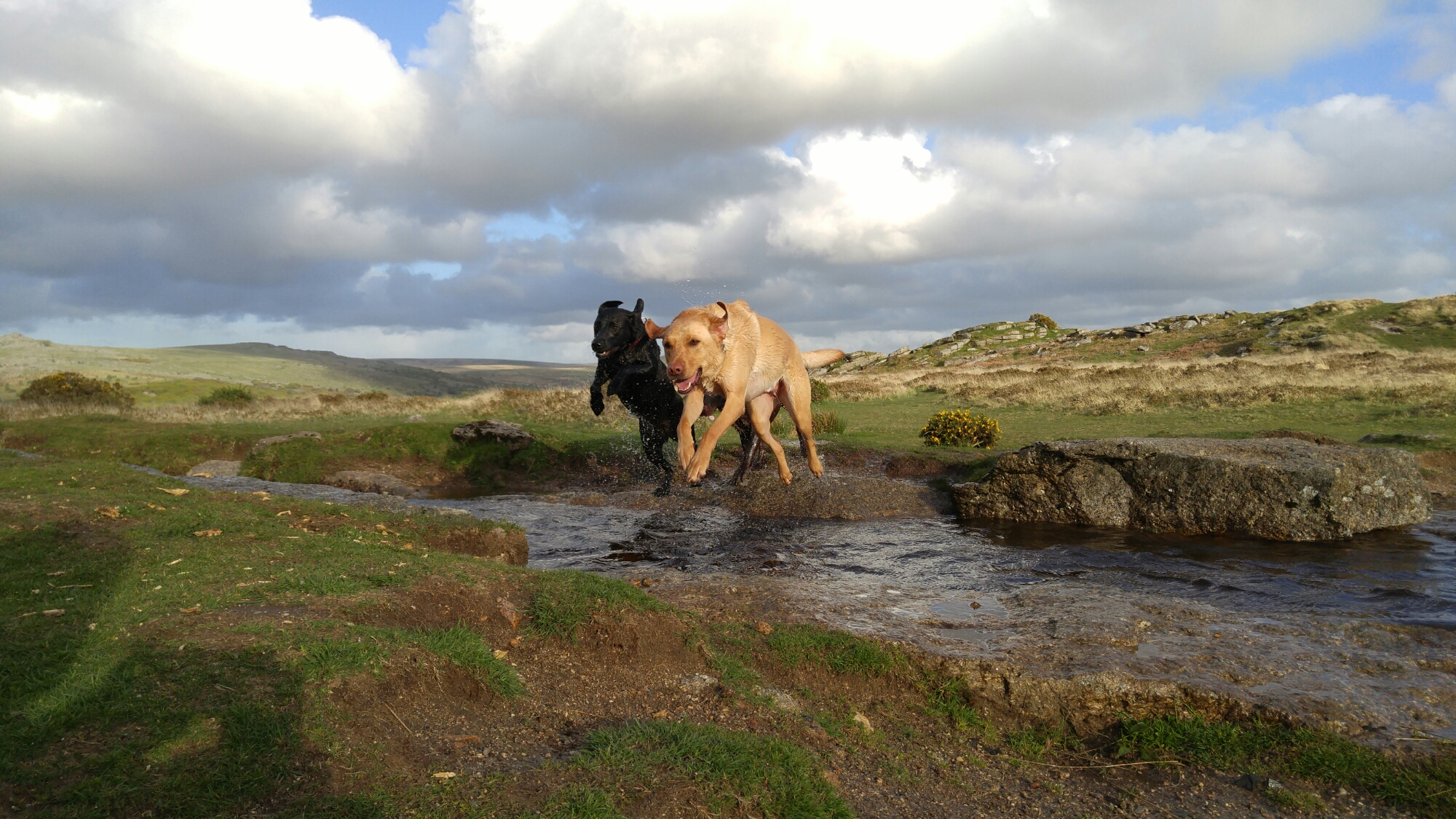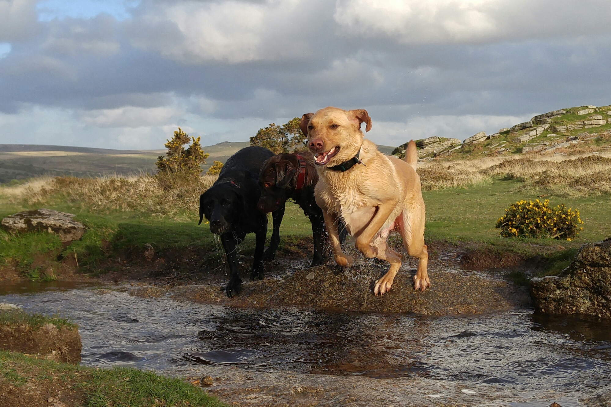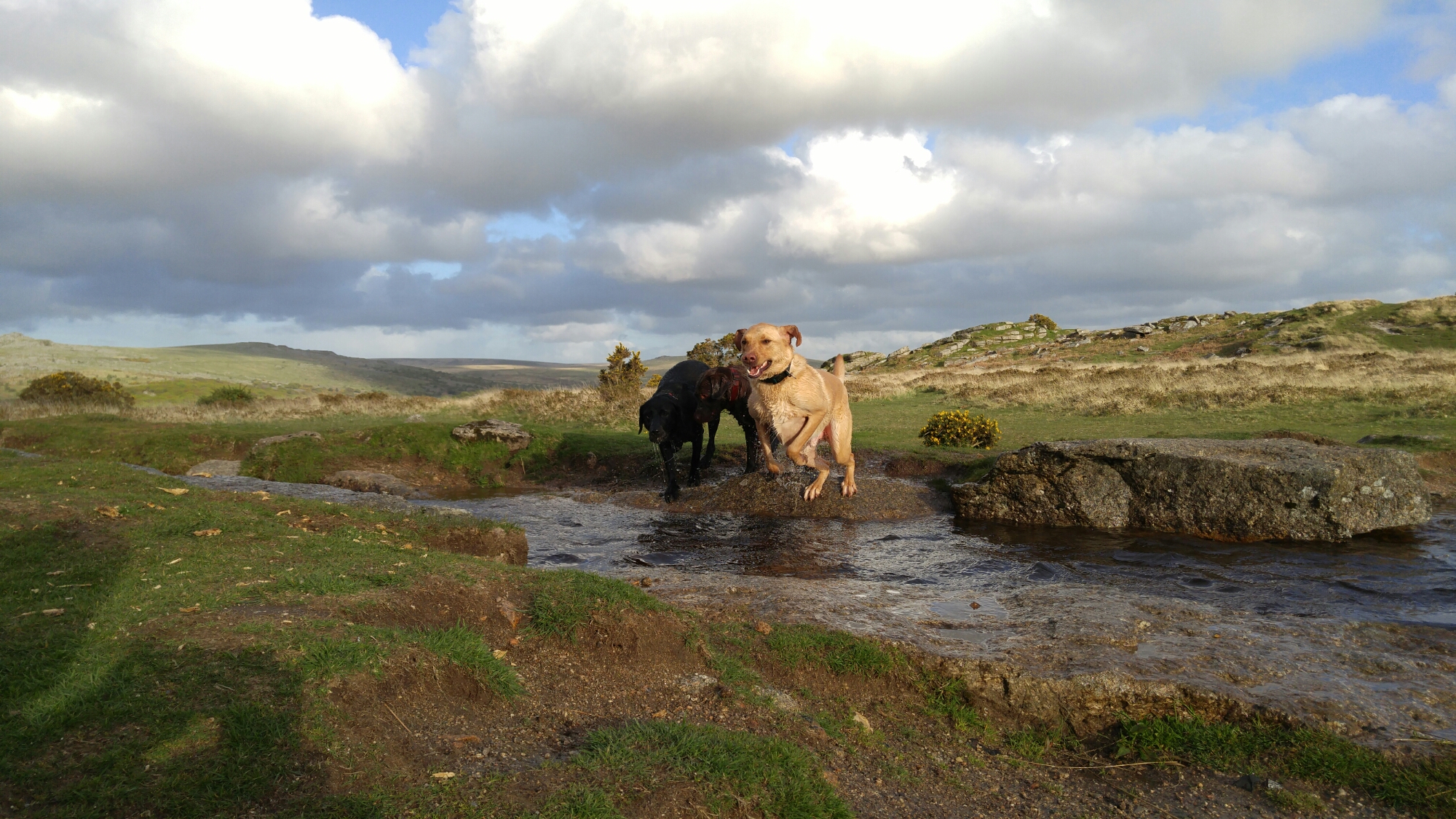 One of the hardest types of shot for any phone to snap are action shots of people, pets and similar things. Well last night just before sunset I took the following photos. These are superb and my 3 dogs are in focus in all of these shots. These were taken in auto mode, using the burst option. I also snapped a few single shots of the scenery as it’s so beautiful. This back garden of mine is called Windy Post, Dartmoor.