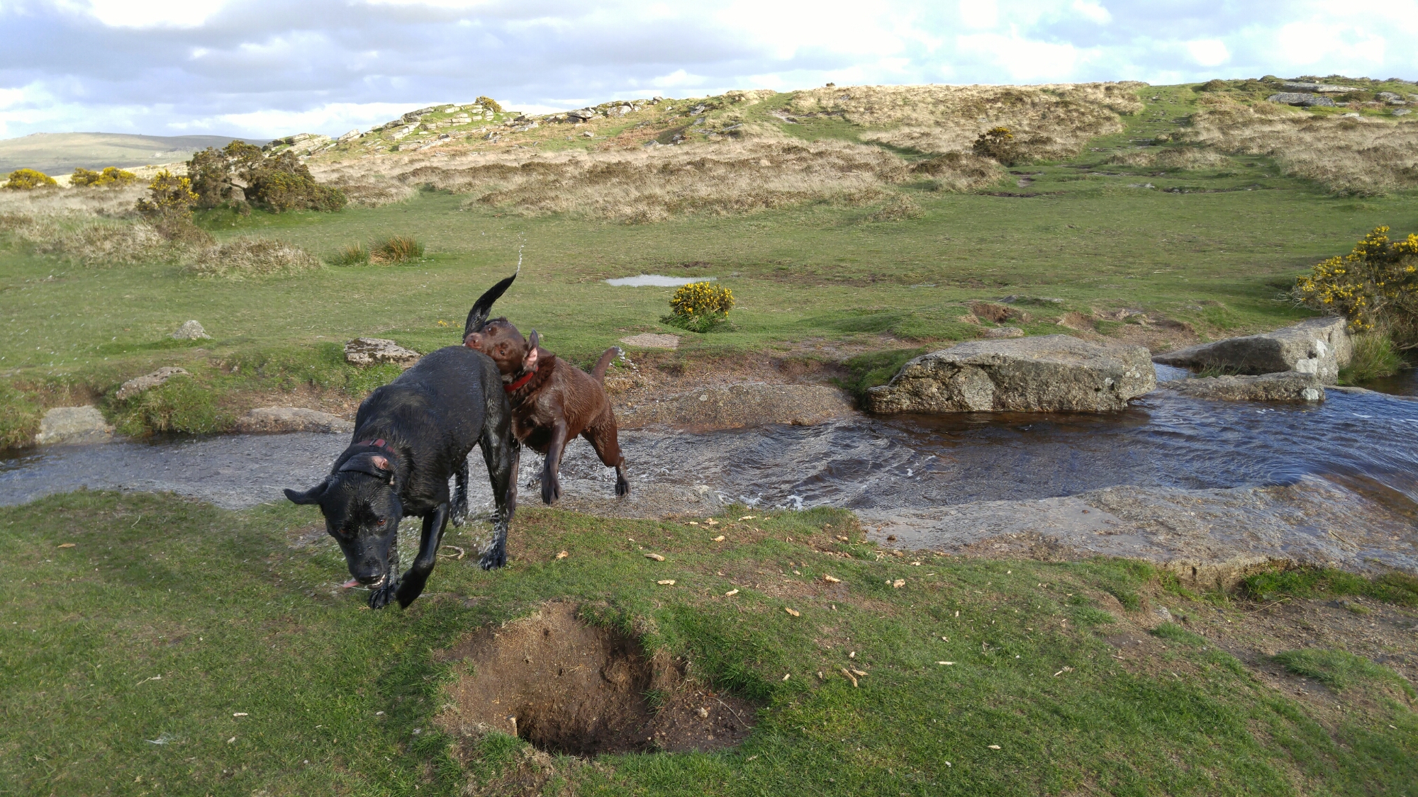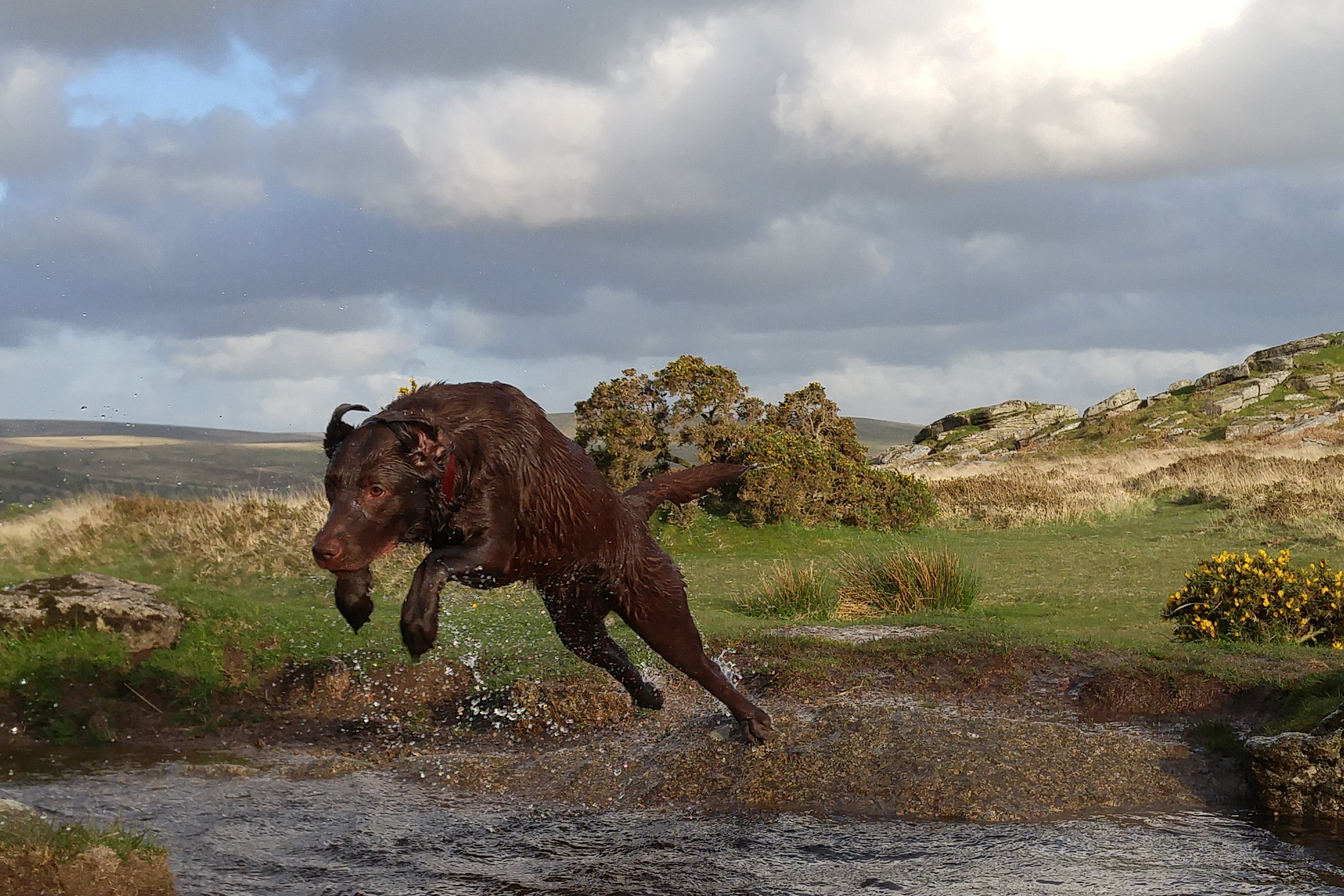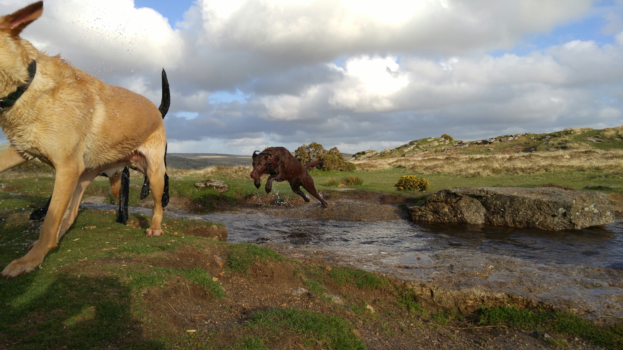 One of the hardest types of shot for any phone to snap are action shots of people, pets and similar things. Well last night just before sunset I took the following photos. These are superb and my 3 dogs are in focus in all of these shots. These were taken in auto mode, using the burst option. I also snapped a few single shots of the scenery as it’s so beautiful. This back garden of mine is called Windy Post, Dartmoor.