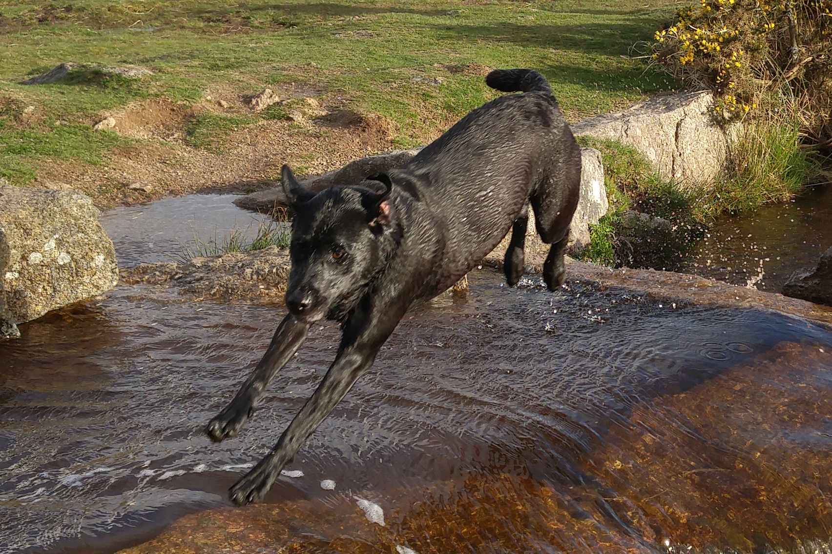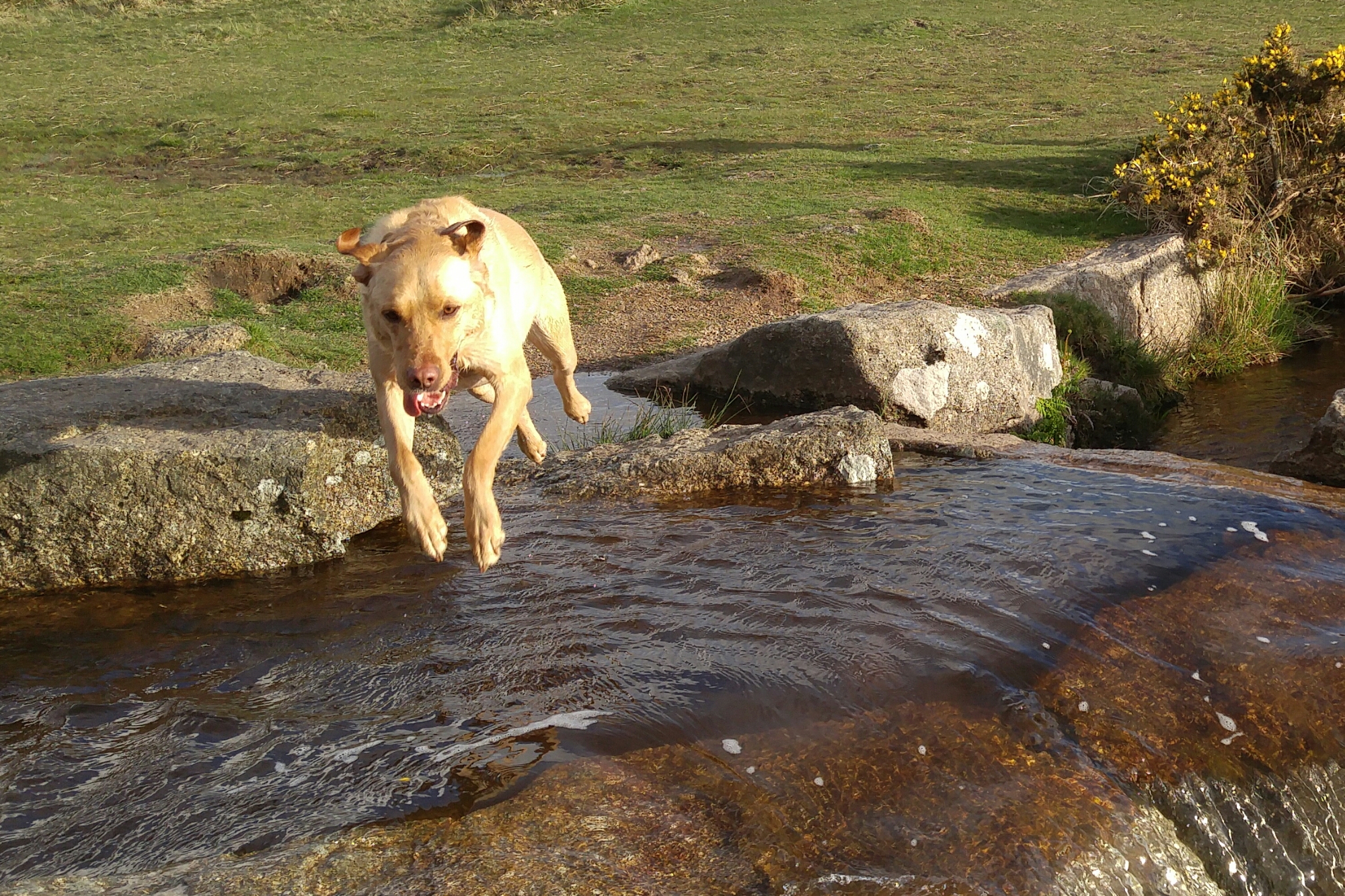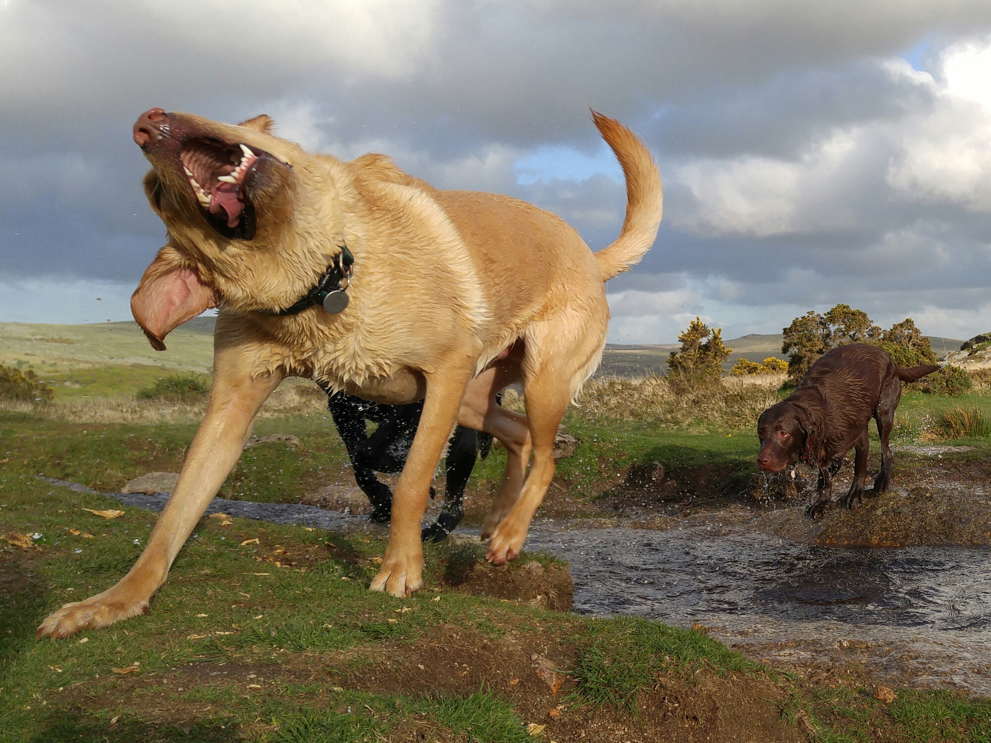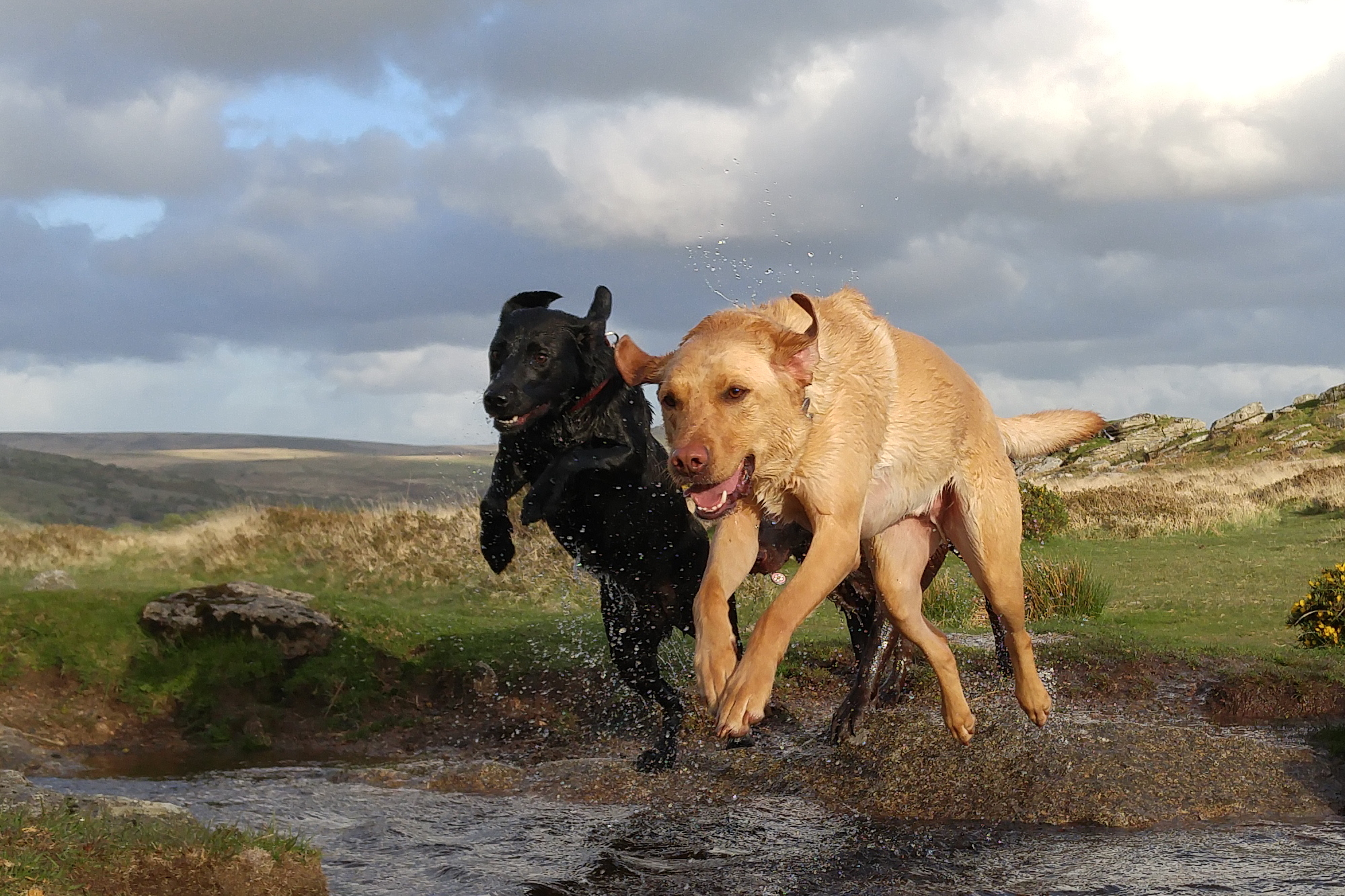 One of the hardest types of shot for any phone to snap are action shots of people, pets and similar things. Well last night just before sunset I took the following photos. These are superb and my 3 dogs are in focus in all of these shots. These were taken in auto mode, using the burst option. I also snapped a few single shots of the scenery as it’s so beautiful. This back garden of mine is called Windy Post, Dartmoor.