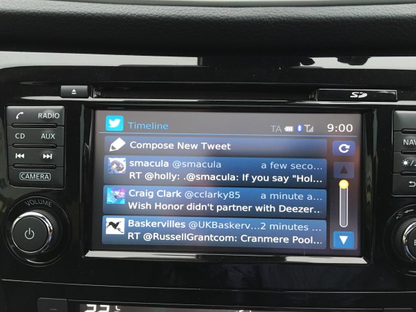 The future of technology is changing. The above tweet was typed and sent from my car dashboard.