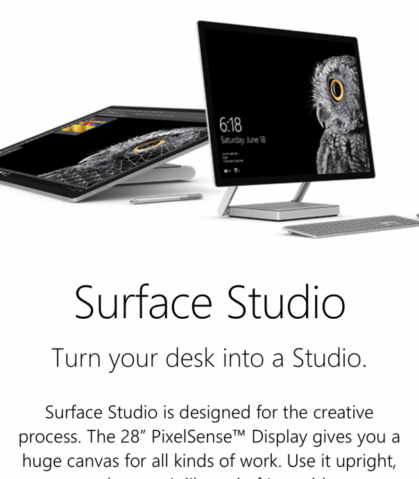 It seems Microsoft is really targeting the high end computing sector with the Surface Studio. Just take a look at the video below and be blown away. An incredible piece of engineering, don’t you think? Not cheap either with the i7 version costing $3,499.