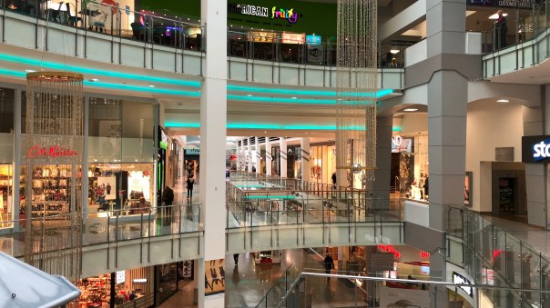 Above, indoor lighting inside a shopping centre.