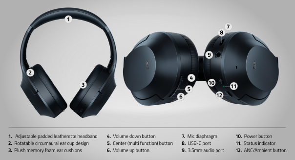 The Razer Opus’ low weight and plush leatherette foam ear cushions and headband provide a comfortable, pressure-point free fit for long periods of use. Each battery charge lasts up to 25 hours with ANC on, allowing users to enjoy a continued, uninterrupted high-quality sound experience while in a noisy environment.
