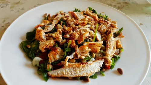 Below are a selection of my meals from this week, from lunch, breakfast and dinner. These are all from the Blood Sugar Diet book. What amazes me is the fact that full fat items are used in this diet. The full fat helps keeping you feel full and is healthy. Who’d have thought that! Click on any photo to open the gallery to see photo in a larger size. Don’t forget to check out Result Week 1 and Week 2 Posts which has more food photos 🙂 The food photo at the start of this post, was chicken and vegetables. The chicken was coated with chopped almonds, parmesan and basil. You will see below a plate with a few almonds on. One day I had some spare calories, so I weighed and checked the calories and plated just the right amount of almonds I could enjoy that day.