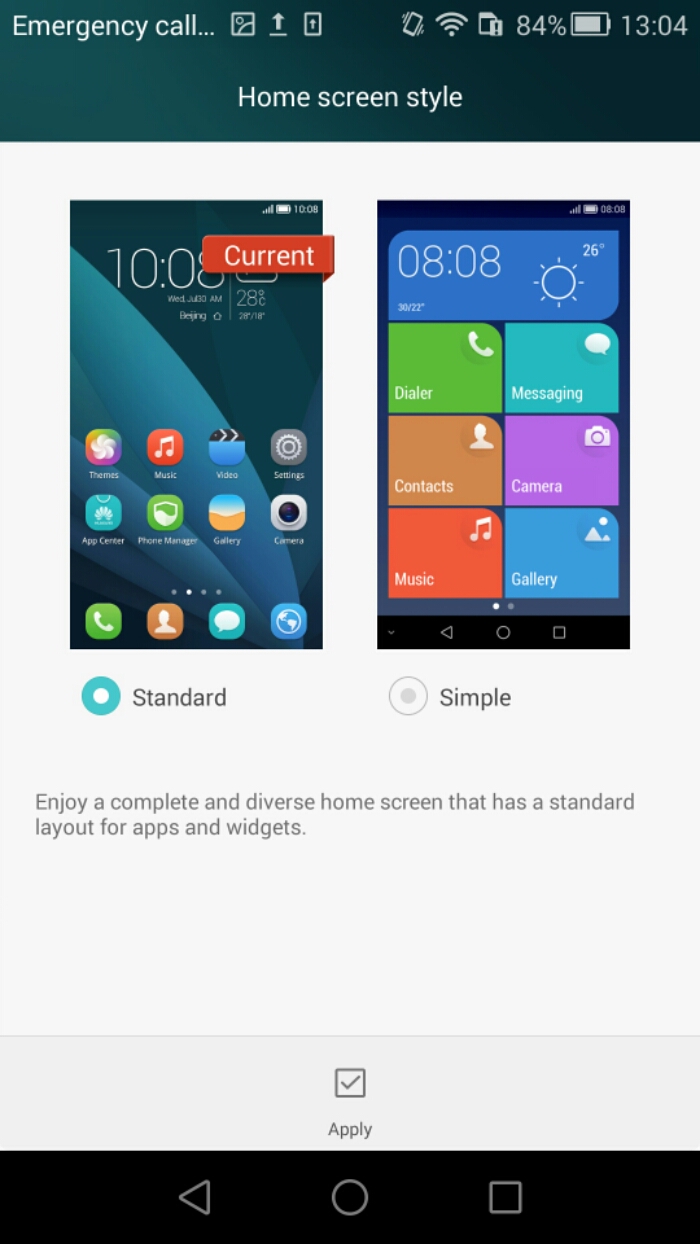 The Homescreen style enables an optionally easy mode with 7 big buttons on the screen. Ideal for some people and fairly well designed too. Tapping on the display menu gives options for brightness, colour temperature, wallpaper, daydream, font size, pulse notification light and more.