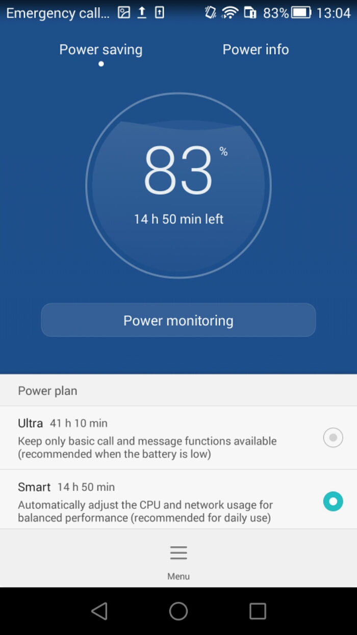 The Honor 6 comes with a number of Power Saving options from normal, smart and Ultra Power saving mode. With 79% battery left, normal was showing 13h 23m, smart 14h 18m and ultra 40h 22 mins. In Ultra mode you basically have a dumb phone. Protected apps allow you to control which apps run in the background. The last option shows you any particular apps that consume heavy amounts of battery in the background. A decent set of options. The Notification manager is another set of controls for each app to restrict, deny or allow the app from sending push messages to the notification panel.