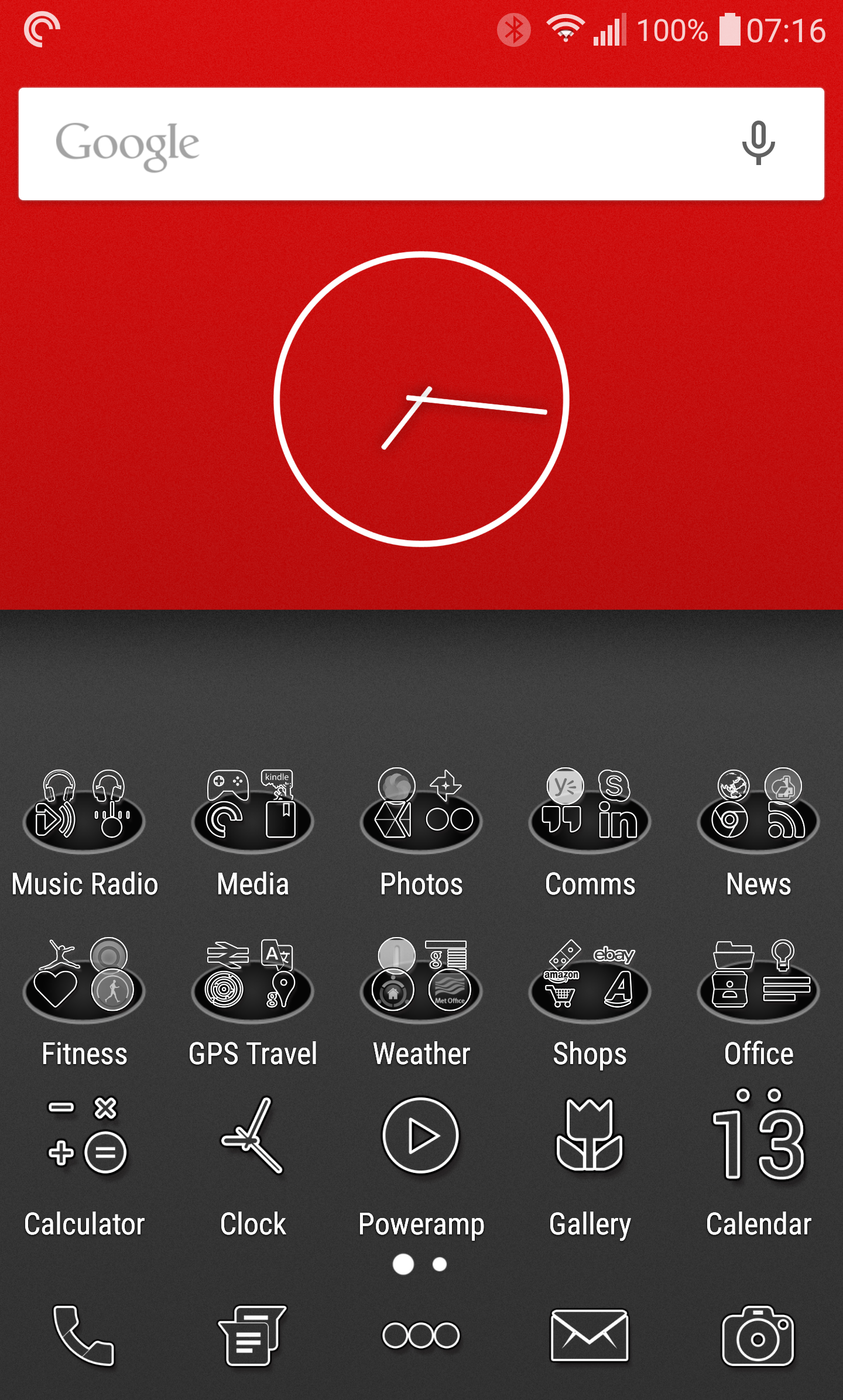I must admit it has been refreshing using Nova Launcher instead of Apex Launcher, but I do prefer the one setting on Apex that allows for the status bar to match the wallpaper. Also Apex allows individual resizing of icons for the dock, folders, and homescreen. But Nova allows the clock to be removed from the status bar, has alternative folder styles as shown in screen shot and allows integration with Missed it. For a number of the advanced features you need to have rooted your phone.