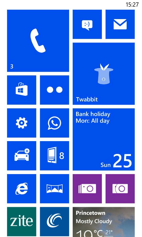 The beauty of the Windows Phone home screen is you only need a quick glance to see what’s happening or active or what notifications you have received via social networks, apps or messages. It is a very simple and clear way of viewing activities. I started with the phone app, email, sms, tweets, app.net, WhatsApp, calendar, marketplace, settings, news feeds, blog, Nokia Here Navigation and Maps, Internet Explorer, Nokia PRO and Smart Cam apps, weather, photos, weather, sport, news, podcasts and more. Most of these tiles update constantly providing at a glance information.